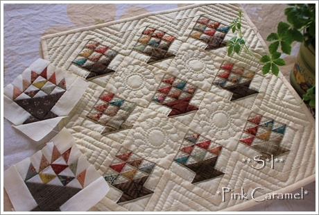 This next quilt comes from Carla at Grace and Favour.  She is good enough to post photos of projects from her Moda Club's show and tell.  I'm not sure how often this happens--I assume monthly--but I must say, these ladies are definitely inspiring.  Please pay Carla a visit and take a look at the beautiful things (not just quilts) they made.  Before you do, though, check out how balanced the colors in this quilt are.  It has my mind spinning out ideas.....