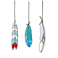 Garden ornaments: a butterfly house for Jenny to hang near their new patio and for Stacey a hammock to put in the camper. The stained glass feathers just because I really like them.